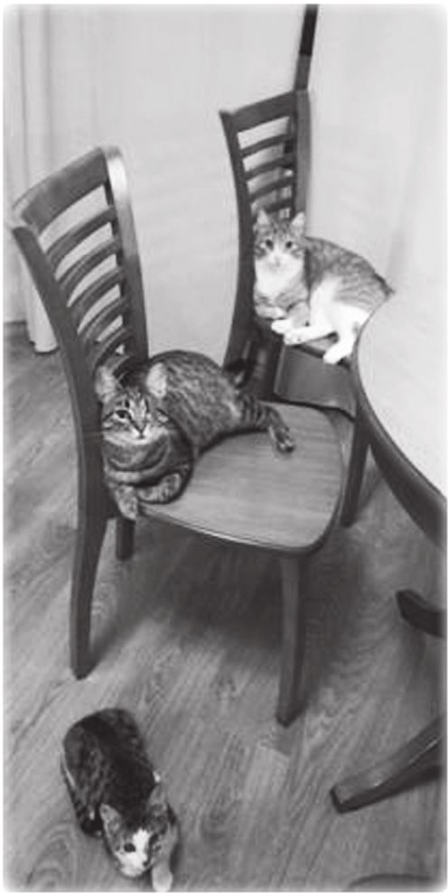 Я еле оторвала голову от подушки, сбросив с себя 8 кг Барсика, направилась на кухню. На радиоле сидел Филимоша и играл с колёсиком приёмника. Наконец поняв, откуда раздавались утренние ободряющие песни, я решила отправиться на боковую. Подойдя к двери спальни, я обнаружила препятствие. Десять глаз смотрели на меня, не мигая.