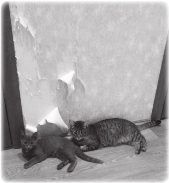 Дома хозяйку ждал сюрприз. В прихожей у стены со спущенными обоями лежали два кота. – Да я смотрю, прямо картина маслом, авангардный рисунок получился. Авторские права оформили уже? Поэтому и сидите, чтобы малышня не внесла корректировку? Боюсь, что никакие изменения уже не повлияют на моё отношение к этой картине.