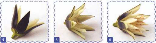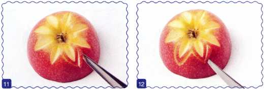 4. Под первым лепестком справа вырезать еще один. Удалить мякоть под ним.