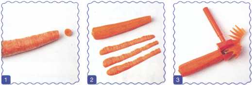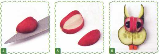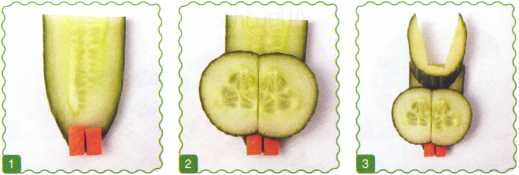 1. Отрезать от огурца тонкий ломтик – это голова. Вырезать зубы из моркови.