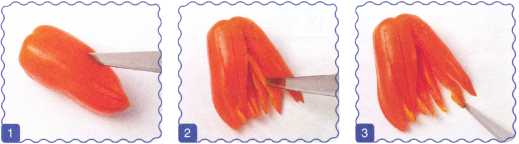 1. Начиная от основания и заканчивая кончиком, сделать в перце продольные надрезы – лепестки.