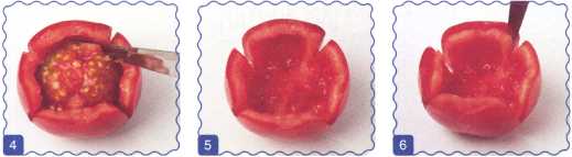 3. Вырезать круглый лепесток и мякоть под ним.