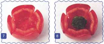 6. Серединку цветка сделать из мелкоплодного помидора.