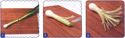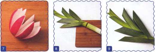 9. Перышки лука разрезать на лепесточки, заострить концы.