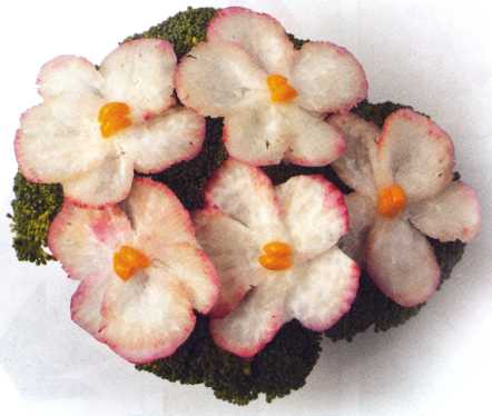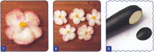8. Из этого же кусочка редьки вырезать еще 4 фиалки.