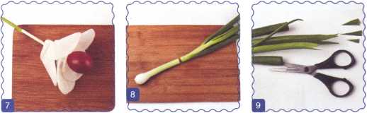 7. Надеть на шпажку перышко зеленого лука – это стебелек.