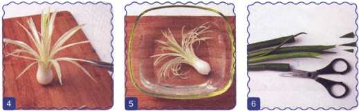 5. Опустить лук на полчаса в ледяную воду, чтобы цветок распустился.