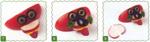 8. Сделать нос из маслины и усы из петрушки.