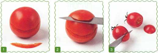 3. От мелкоплодных помидоров отрезать небольшие дольки.