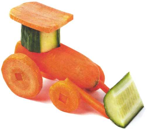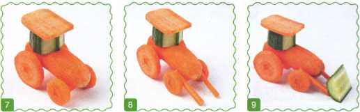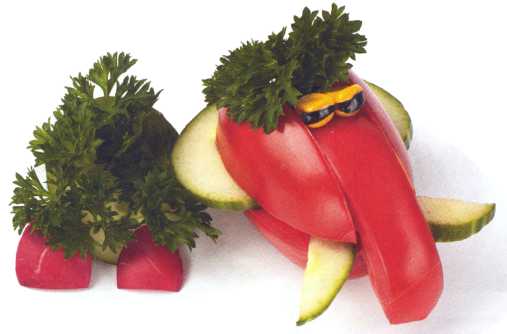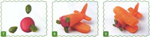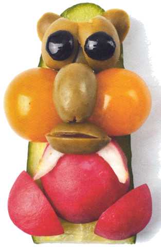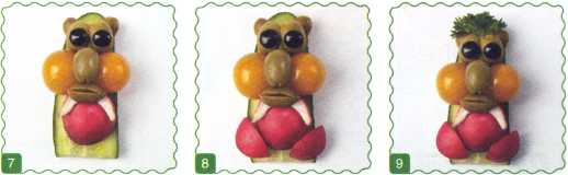 9. Выложить туловище, сделать мамонту челку из петрушки. Ножки вырезать из редиса.