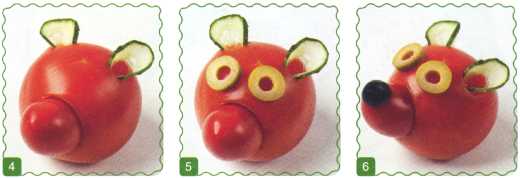 8. Сделать нос из красного помидора.
