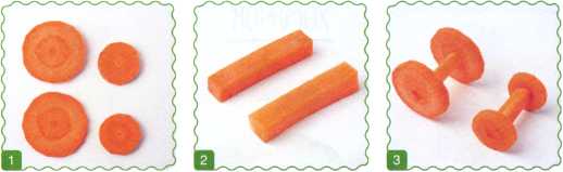 2. От 2 кружочков огурца отрезать 2 сектора – это бивни. Оставшиеся детали – уши.
