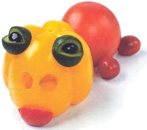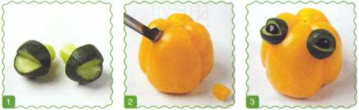 4. Из желтого перца вырезать глаза и вставить в надрез.