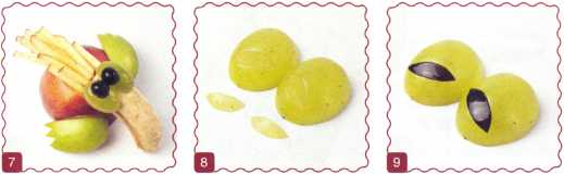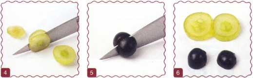 8. От целой ягоды винограда отрезать 2 кружочка.