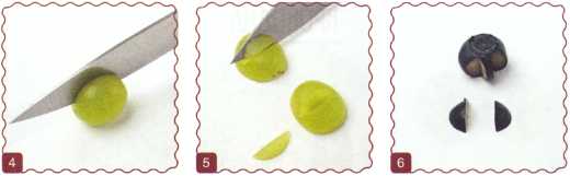 2. Сделать глаза из разрезанной поперек маслины.