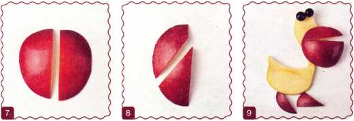 10. Уложить на туловище овальную дольку яблока – крыло.