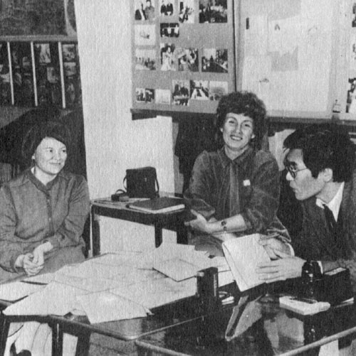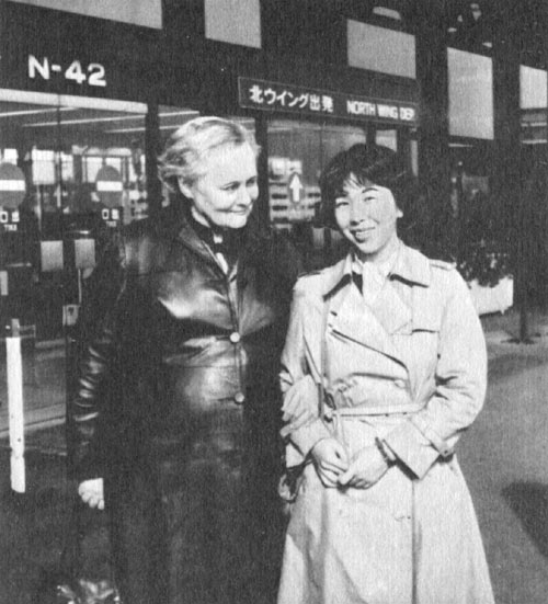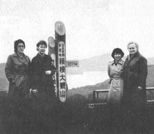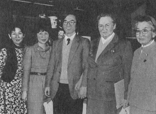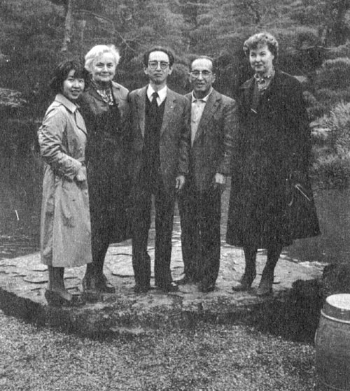 После интервью в «Асахи симбун», 1986 г. (в центре: научный обозреватель газеты Фумихико Иосида, И. В. Стражева, Аки Накати)