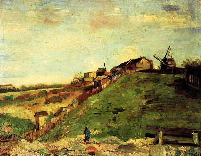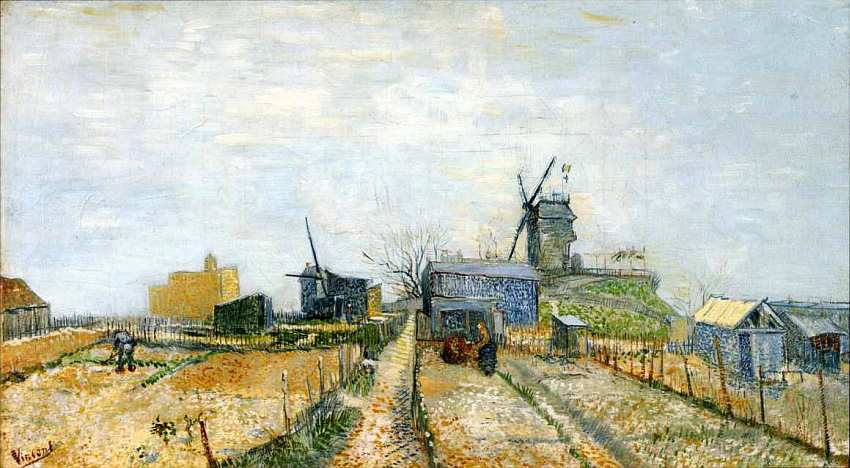 Ван Гог создал 20 картин с видами Монмартра, выбрав нехарактерные для парижской живописи мотивы, напоминавшие ему родную Голландию. Во времена художника Монмартр еще отличался деревенским характером, постепенно уступая поля и огороды наступающему городу. Но мастера привлекала именно старая часть Монмартра. Холмы и пустоши с ветряными мельницами, дворы, похожие на поляны, обнесенные изгородями, оживленные фигурками людей, – все это не имеет в своем облике ничего специфически парижского, это какой-то «деревенский» Париж, символом которого Ван Гог избрал ветряную мельницу.