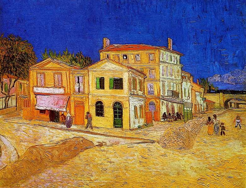 Сколько чисто голландской любви к домашнему очагу вложил он в устройство этого жилища. Винсент считал, что Желтый дом должен быть «сверху донизу увешан картинами», и написал для его украшения целый ряд полотен, включая «Подсолнечники», «Спальню», «Сеятеля», «Колыбельную». Почти все произведения он мыслил связанными друг с другом, решал их как ансамбли, объединенные размером, колористической идеей и темой. «Мне хочется, чтобы у меня был настоящий дом художника, без претензий, напротив, совсем непритязательный, но такой, где во всем, вплоть до последнего стула, будет чувствоваться стиль». Он изобразил Желтый дом на картине, о которой писал брату: «В этом такая мощь – желтые дома, освещенные солнцем… Дом слева – розовый с зеленными ставнями, стоящий в тени дерева, а там – ресторан, куда я каждый день хожу есть. Мой приятель – почтальон – живет в конце улицы, слева, между двумя железнодорожными мостами».