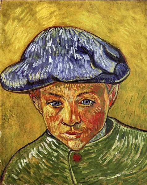 Художник страстно желал писать человеческую фигуру. «Нет более удачного и более быстрого пути к улучшению качества своей работы, чем начать писать фигуры». К счастью, у него появился добрый приятель – почтовый служащий Жозеф Рулен, который предоставил себя и всю свою семью в его распоряжение. Осенью 1888 Ван Гог решил воплотить в жизнь план нарисовать портреты всех ее членов, живописцу это было тем более приятно, что семья Рулен представлялась ему образцом здоровой жизни простых людей. Из письма художника Тео: «.. Я написал портреты со всех членов семьи того почтальона, которого я уже рисовал. Муж, жена, младенец, мальчик и шестнадцатилетний юноша – все яркие типажи, выглядят очень по-французски, хотя отец и напоминает русского». Всего получилось более двадцати работ, одной из которых и является портрет одиннадцатилетнего Камиля Рулена на золотистом сияющем фоне. Желтый цвет в символике Ван Гога всегда имеет отношение не только к энергии Солнца, но и к эмоциональнонравственной сфере, очень часто портреты друзей живописец решал в сине-желтой гамме, цветах любви и вечности. Именно их он использовал в портрете мальчика и многих других членов его семьи.