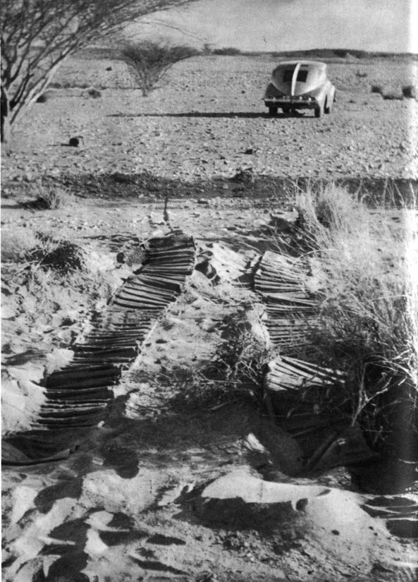 Единственный уход за шинами заключался в снятии защитных кожухов у задних колес, чтобы обеспечить лучший доступ воздуха и чтобы шины не перегревались чрезмерно при высокой температуре. Другая мера, которую мы принимали в местности с глубоким песком, заключалась в ослаблении давления в шинах. Мы частично спускали воздух, чтобы шины оседали на песок более широкой поверхностью и не зарывались в него. Однако на протяжении большей части пути мы не могли прибегать к этому методу из опасения прокола шин острыми камнями, по которым нам приходилось ехать, не заботясь ни о «татре», ни о шинах, если мы вообще хотели выбраться оттуда. При высокой, едва переносимой температуре во время ограниченного сроком переезда в Хартум не было возможности выпускать воздух перед песчаными отрезками пути и снова подкачивать шины ручным насосом на каменистой местности.