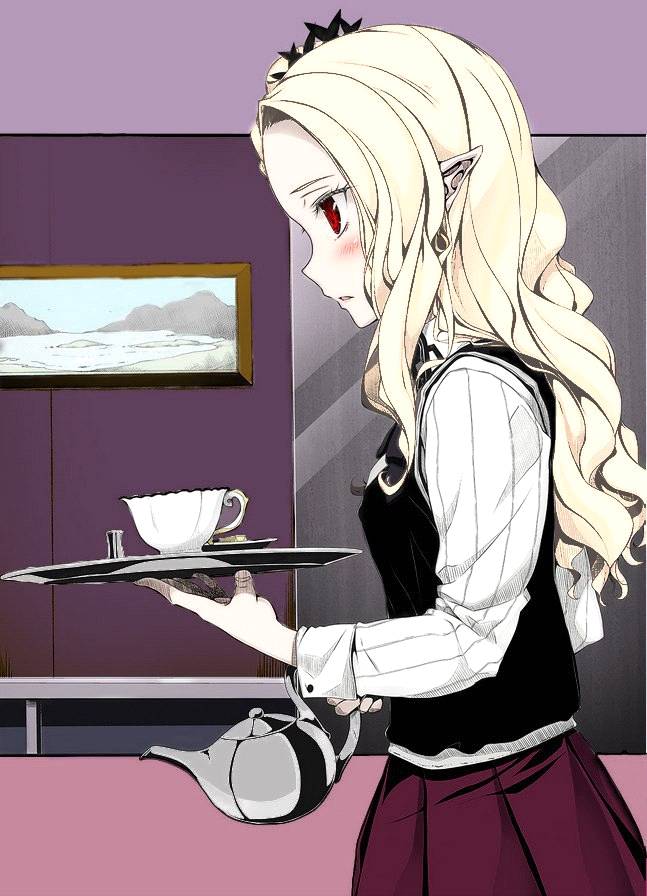 Той, кто принесла чай на подносе из мини-кухни, была Эльменхильда. Сегодня она оделась в школьную форму Академии Кё. Заметил, что школьная форма была очень удобной. Если она носила эту знакомую форму с кукольной внешностью и стройной фигурой, то мне вспоминалось особое чувство свежести.