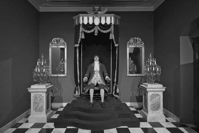 «Для освещения мы использовали пять прожекторов, – рассказывает руководитель проектов Philips «Световые решения» Сергей Богданов. – Два из них подсвечивают расположенные по бокам от восковой фигуры старинные хрустальные светильники. Когда на них падает чистый белый свет, возникает неповторимый искрящийся эффект». Еще три прожектора подчеркивают непосредственно фигуру императора. Особенность этих прожекторов – в светодиодах, имеющих узкий пучок света. Во-первых, это позволило избавить экспонат от так называемого светового загрязнения – желтых пятен, которые выдают обычные лампы накаливания. А во-вторых, когда посетитель рассматривает экспозицию, то акцентирует внимание на троне и фигуре императора, а все остальные детали скрыты полумраком. Новый источник света обладает повышенным индексом цветопередачи, и теперь Петр I предстает перед посетителями музея в наилучшем свете. При помощи красного фильтра заиграл царский сюртук, что немаловажно. Дело в том, что эта деталь гардероба – подлинная и вышита Екатериной I в 1724 году. Об этом свидетельствуют записи личного токаря императора, где говорится, что «императрица трудилась с комнатными своими девицами в вышивании… и по окончании поднесла оный его величеству». Несмотря на древность, сюртук теперь смотрится как новый. Да и позолоченный трон благодаря использованию желтых фильтров выглядит так, будто сделан вчера.