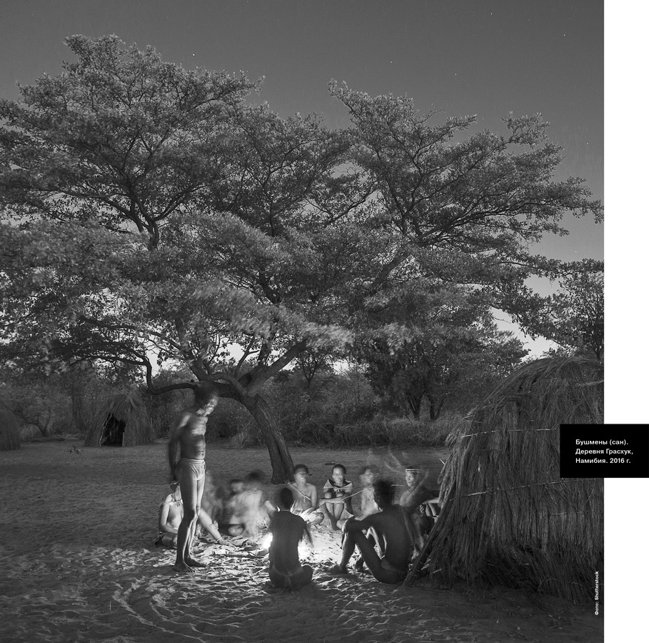 Ощутите атмосферу пустыни Калахари в Намибии. Днем здесь жарко, а ночью прохладно. После долгого дня, занятого добычей и приготовлением пищи, воспитанием детей, уходом за животными и поиском воды, наступает вечер. Уже через полчаса совсем стемнеет, а сейчас быстро опускаются сумерки. Племя собирается у костра – не только для того, чтобы погреться, но и для общения – о прошедшем дне, прошлом и будущем. Охотники в красках описывают, как чуть не поймали антилопу, а еще рассказывают, что нашли хорошие источники воды. Один из старейшин племени берет слово и говорит о прошлом, его история изобилует ритмичными фразами и рефренами. Его переспрашивают, кивают, хмыкают и смеются над всеми поворотами сюжета.