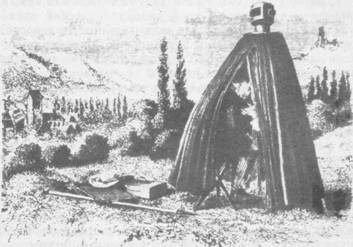 К этому можно добавить, что камера-обскура находила применение и в военном деле. В 1868 – 1869 гг. во время морских стрельб в районе Кронштадта с ее помощью поручик Толузаков довольно точно определил расстояние до разрывающихся снарядов. В верхней части сконструированной поручиком камеры-обскуры находилась призма, которая поворачивалась в сторону разрывов. Через призму изображение местности, где разрывались снаряды, попадало в объектив, а через объектив проецировалось на столик, на котором лежал планшет с нанесенной на него километровой сеткой. По ней и определялось расстояние.