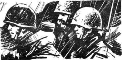 Впрочем, в то время здесь вряд ли у кого мог возникнуть вопрос, куда идут солдаты. Конечно же на фронт! Хотя грохота боя уже не было слышно, но близость фронта еще ощущалась. По дорогам на Запад шли танки, артиллерия, автомашины с боеприпасами, продовольствием и прочим военным снаряжением. Пехота теперь в основном тоже на машинах двигалась. Однако можно было еще встретить солдат и в пешем строю. Вот как этих, что глухо дробят сапогами обочину, подгоняемые усатым старшиной-великаном.