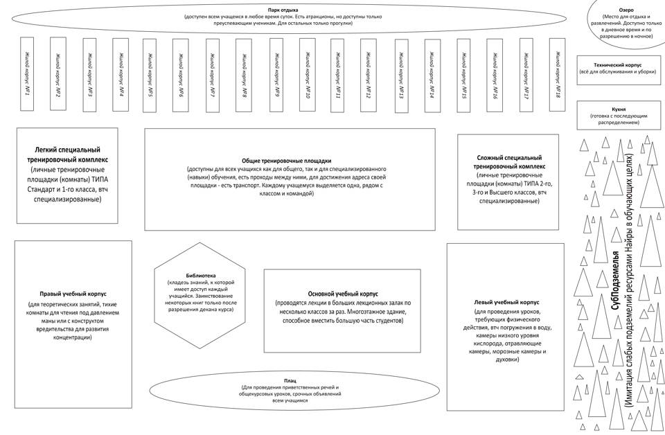 За лёгким специальным тренировочным комплексом располагался уже увиденный ими правый учебный корпус, у которого они не стали долго задерживаться и полетели назад к жилым корпусам.