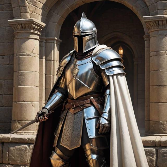 Так прошло минут десять. Иллейв уже подумала, что её не примут, как двери отворились, и наружу показался новый, доселе не виданный ей, стражник. Его доспехи были белого цвета, позади ниспадал такой же плащ, на голове одет белый шлем с защитой для носа и щёк, взгляд серьёзный и внимательный. Позади него неуверенно переминался с ноги на ногу прежний стражник в блеклых и смотрящихся довольно скромно кожаных доспехах.
