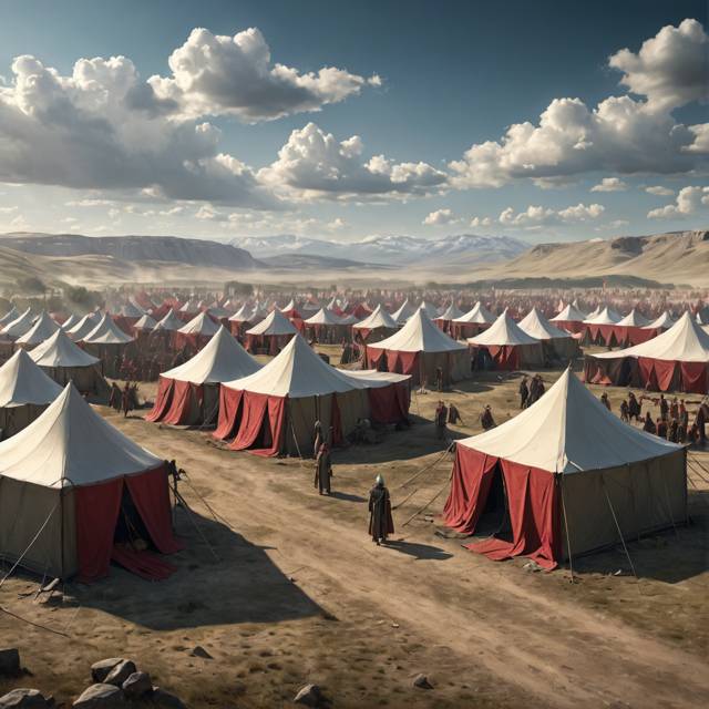 От поселения приграничное, где мы провели последние полтора дня, отъехали километров на десять, когда впереди показались высокие шатры с развевающимися знамёнами империи. Все белого цвета, светящиеся в лучах яркого солнца, посреди этой голой степи они смотрелись монументально. В лагере царила суета; имперцы, словно муравьи, кишили туда-сюда в нескончаемом потоке.