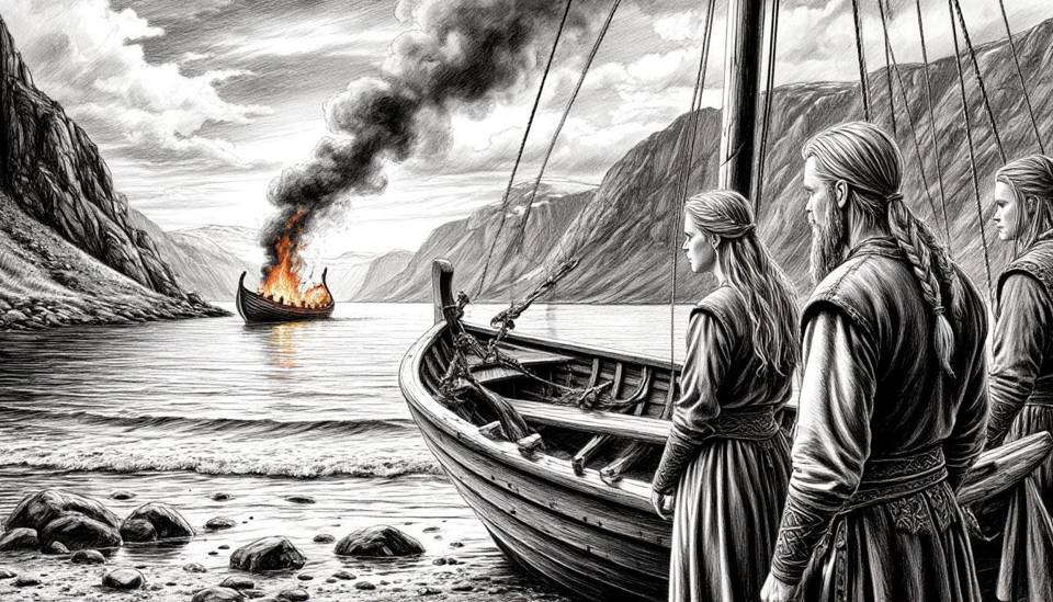 Ладью, груженную смертью, вытолкнули на глубокую воду. Течение подхватило ее, медленно понесло к центру фьорда. Сумерки сгущались быстро, окрашивая море в свинцово-серые, а затем и в чернильные тона.