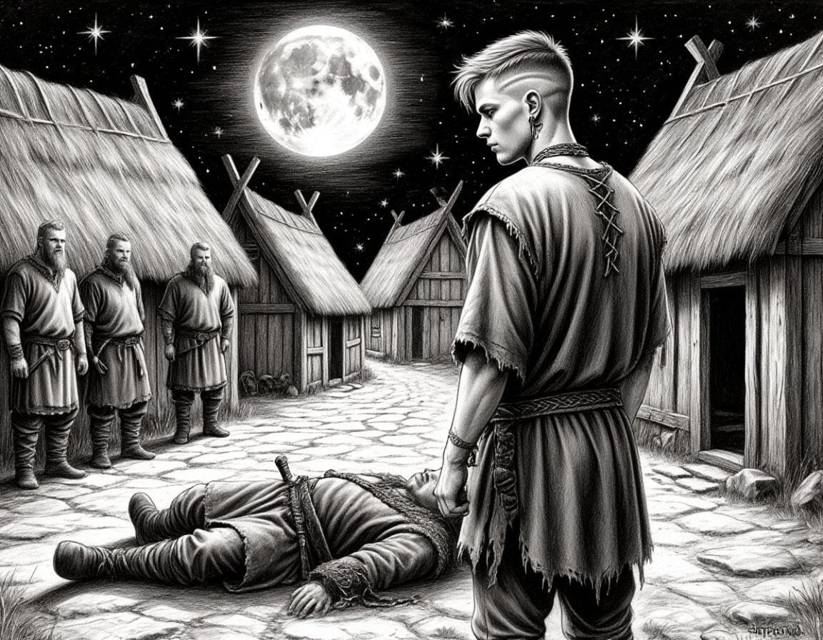 Толпа расступилась. Из своего дома, накинув на плечи медвежью шкуру, вышел Бьёрн. Его лицо в свете факелов было маской холодной, беспощадной ярости. Он подошел, окинул взглядом лежащего в грязи Балунгу и меня, стоящего над ним в ступоре.