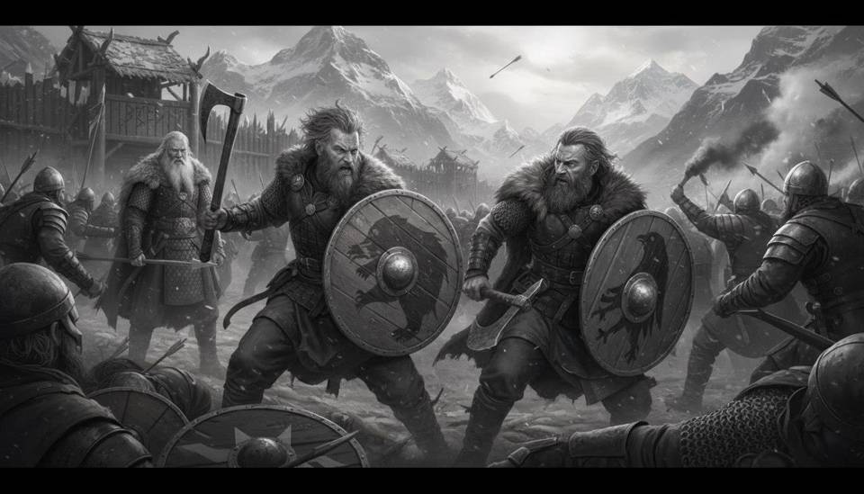 Два брата, два старых волка, потерявших свои стаи, бок о бок, как в далекой юности, врезались в ближний круг Харальда. Их топоры работали в унисон, дополняя друг друга – сокрушительные, размашистые удары Бьёрна, не оставлявшие шанса на жизнь, и яростные, точные, как удар гадюки, выпады Сигурда.