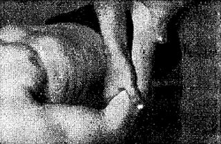 1. «Щипцами», образованными всеми пальцами руки массажиста (рис. 37).