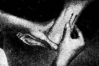 1. «Щипцами», образованными указательным и третьим (средним) пальцами массажиста. Захватывая, точно в клещи, поочередно каждый палец массируемого, делают прямолинейное и спиралевидное движения, начиная от ногтевых фаланг; пальцы массажиста вращаются вокруг пальца массируемого. Эти же движения можно производить и при помощи трех пальцев массажиста (большого, указательного и третьего), которые должны плотно обхватывать массируемый палец. Прием «щипцами» наиболее распространенный.