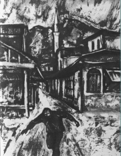 Действительно, при первом же стуке в ворота Иван Кралич, не помня себя, кинулся к ограде, снова перелез через нее и спрыгнул на улицу. Несколько секунд он стоял в замешательстве. Потом настороженно осмотрелся, но ничего не увидел в непроглядной тьме. Черные грозовые тучи затянули небо; тихая вечерняя прохлада отступила перед порывами ветра, жалобно завывавшего на безлюдных улицах. Кралич свернул в первый попавшийся переулок и прибавил шагу; нащупывая дорогу, он хватался руками за стены, но то и дело попадал ногой в лужу. Все ворота, ставни и окна были закрыты наглухо. Через их щели не проникало ни луча света; нигде не было ни малейших признаков жизни. Как и все провинциальные города, этот городишко еще задолго до полуночи казался мертвым. Кралич долго шел наудачу, надеясь где-нибудь выйти на окраину. Но вдруг он вздрогнул и, остановившись под широким навесом над воротами, замер. Он увидел впереди чью-то темную фигуру. Не трогаясь с места. Кралич слегка прислонился к воротам. Рычание, а затем сердитый лай заставили его отскочить в сторону. Он разбудил дворового пса, спавшего за оградой у самых ворот. Неосторожное движение и собачий лай выдали Кралича. Ночная стража засуетилась, забряцало оружие, и кто-то крикнул по-турецки: «Стой!» В минуты неотвратимой опасности рассудок коварно покидает людей, и ими движет только слепой инстинкт самосохранения. В такие минуты у человека, как говорится, нет головы; есть только руки – для сопротивления и ноги – для бегства. Стоило Краличу отступить назад, и мрак сразу же образовал бы непроницаемую преграду между ним и стражей. Но Кралич бросился вперед, вихрем пронесся между полицейскими и побежал дальше. Стражники погнались за ним, и улица огласилась топотом и криками. Среди них выделялся визгливый голос полицейского-болгарина, оравшего: «Стой! Стрелять будем!»