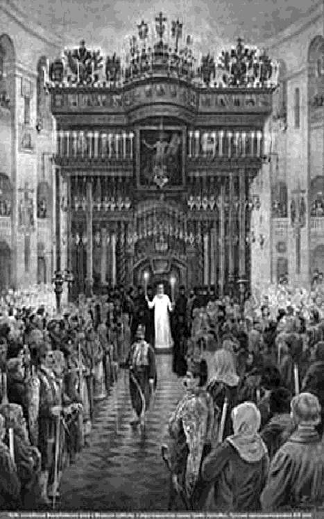 Среди храма стояли солдаты в ещё большем числе, в фесках и с ружьями. Сначала я не порывался пройти на середину и простоял всю полунощницу у южных дверей, откуда мне хорошо были видны все приготовления в алтаре к крестному ходу.