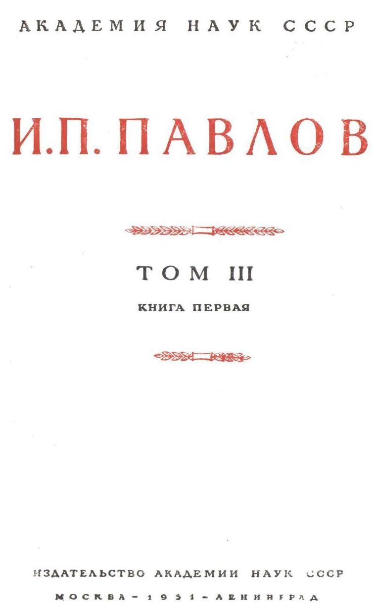 Первая книга III томя ограничена теми главами, которые составили содержание первого издания «Двадцатилетнего опыта» (1923 г.). Главы VIII, XXV и XXXII, отсутствовавшие в первом издании «Двадцатилетнего опыта», были включены И. П. Павловым в пятое издание нологическом порядке. В таком виде (с той же нумерацией) эти главы сохранены в первой книге III тома «Полного собрания сочинений» И. П. Павлова.