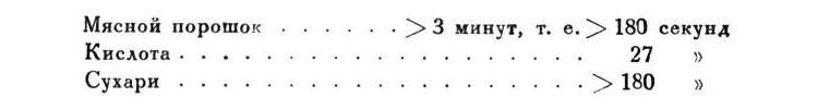 Теперь мы сделаем еще опыт в подтверждение того, что количество слюны зависит от сухости пищи: чем суше пища, тем больше слюны. Мы дадим сейчас собаке те же сухари, но предварительно смоченные водой. Слизистые железы – 0.8 куб. см, околоушная железа – 0.9 куб. см.