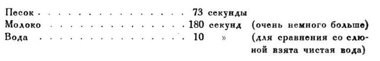 Мы собрали слюну, выделившуюся на различные вещества; приступим к ее анализу. Вот воронка с капиллярной трубочкой. Нальем в воронку определенное количество слюны и пропустим через трубочку. В руках у меня особые часы, которые при надавливании начинают механически идти и затем по желанию могут быть остановлены. Такими часами обыкновенно пользуются на беговых состязаниях. Они очень удобны, так как дают возможность точно отсчитывать время. не глядя на часы. Мы промываем воронку водой и сушим спиртом и эфиром.