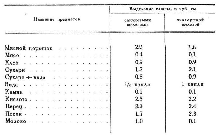 Теперь мы повторим все, выпишем результаты всех наших опытов и разберем все это разнообразие деятельности слюнных желез.