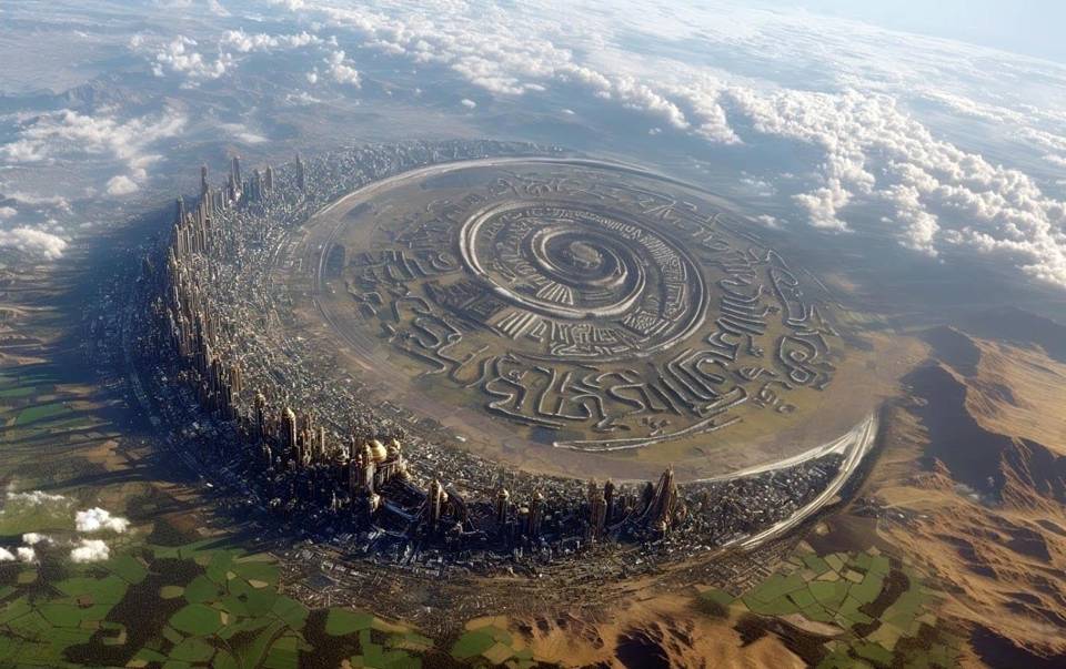Внутренний край полумесяца представлял собой нечто немыслимое – сплошную, колоссальную стену. Она тянулась на многие километры, описывая идеальную дугу, и была обращена вогнутой кромкой внутрь, в сторону некой точки на горизонте, которую при посадке было уже не разглядеть.