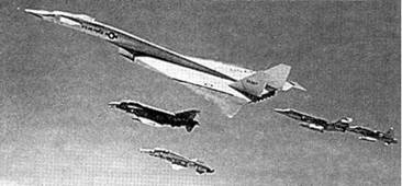Самолет Норт Америкен ХВ-70А в сопровождении учебного самолета «Тэлон»