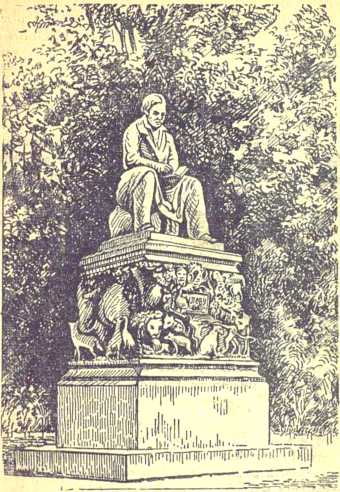 Памятник И. А. Крылову в Ленинграде, в Летнем саду, открытый в 1855 году.