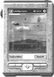 Как уже отмечалось, описанная модель визуализации игры имеет много общего с процедурой рисования диаграмм. В данной игре вне цикла визуализации выполняется максимально возможный объем работы. Кроме того, при любой удобной возможности в ней используется предварительное создание изображений. В цикле визуализации выполняются лишь простые операции побитового копирования фонового изображения, а также рисуются несколько небольших спрайтов, частично прозрачных для фона, немного текста и несколько простых прямоугольников. Поскольку в игре не распределяется память и исключены напрасные траты процессорного времени внутри цикла визуализации, все это может происходить очень быстро.