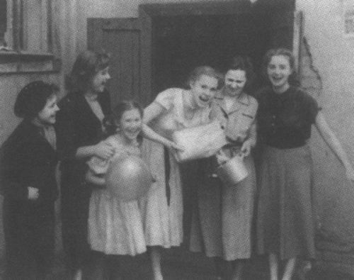 Общежитие на Трифоновке. Слева направо – Ада Петренко, Галя Грозина, сестра Наталка, я, мама, Наташа Антонова. Скоро будут оладушки. Москва. 1955 год.