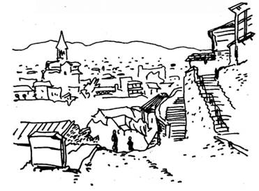Гряда холмов, ограничивающая левобережье города, является естественной границей – вы видите как поднимаются улицы по склонам холмов Дзедзави, Веркетили, Махата и заканчиваются там, где уже не в силах преодолеть крутизну склона. Гора Махата (Игла) выделяется своей конической вершиной.